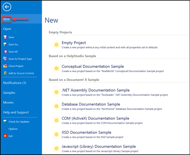 1. Start by launching the HelpStudio and look for the options related to initiating a new project.
