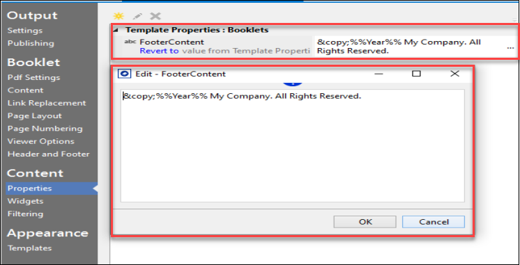 3. In the Edit - FooterContent input field, replace the existing text with the required footer content information.