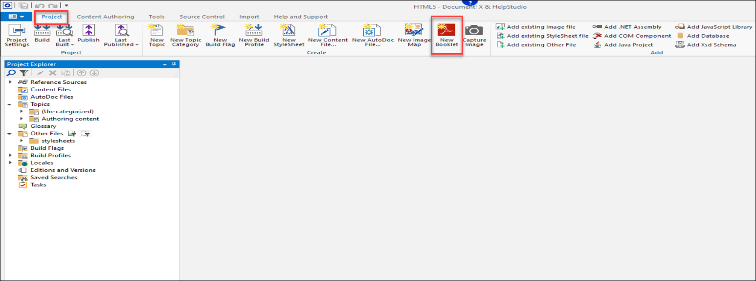 - Click New Booklet button on the Project ribbon tab.