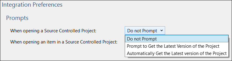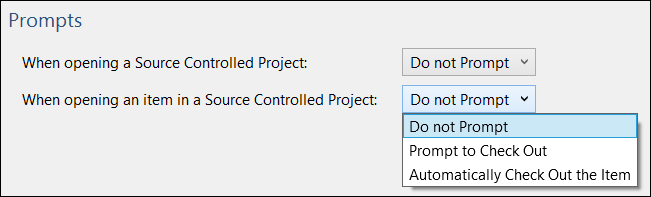 - Select Prompt to Get the Latest Version of the Project if you want to always get the latest version of the project when you open it from source control.