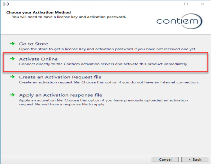 - On the Activate Online dialog, enter the License ID and Password details and select Activate.