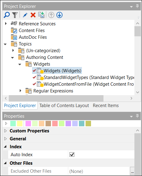 - On the Project Explorer, select the Topic for which you want to prevent the automatic generation of an index keyword.